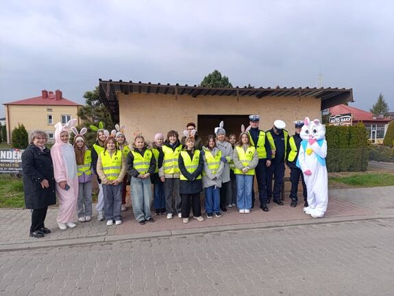 Funkcjonariusze Komendy Powiatowej Policji w Opatowie wspólnie z uczniami Szkoły Podstawowej w Sadowiu przeprowadzili działania profilaktyczne pod nazwą „Wielkanocny Króliczek”. To cykliczna akcja skierowana na bezpieczeństwo w ruchu drogowym.