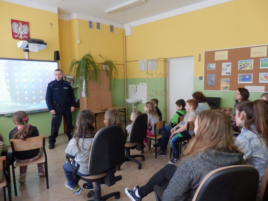 Z kolei w czwartek dzielnicowy sierż. szt. Paweł Łasak spotkał się z dziećmi uczestniczących w zajęciach w Szkole Podstawowej w Kobylanach. Policjant również podjął temat bezpieczeństwa podczas ferii.