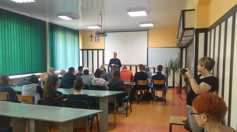 Zajęcia z młodzieżą przeprowadził asp. Grzegorz Rusak, a ich temat brzmiał „Kibice Blokersi grupy podwórkowe, jak bronić się przed wciągnięciem do paczki”.