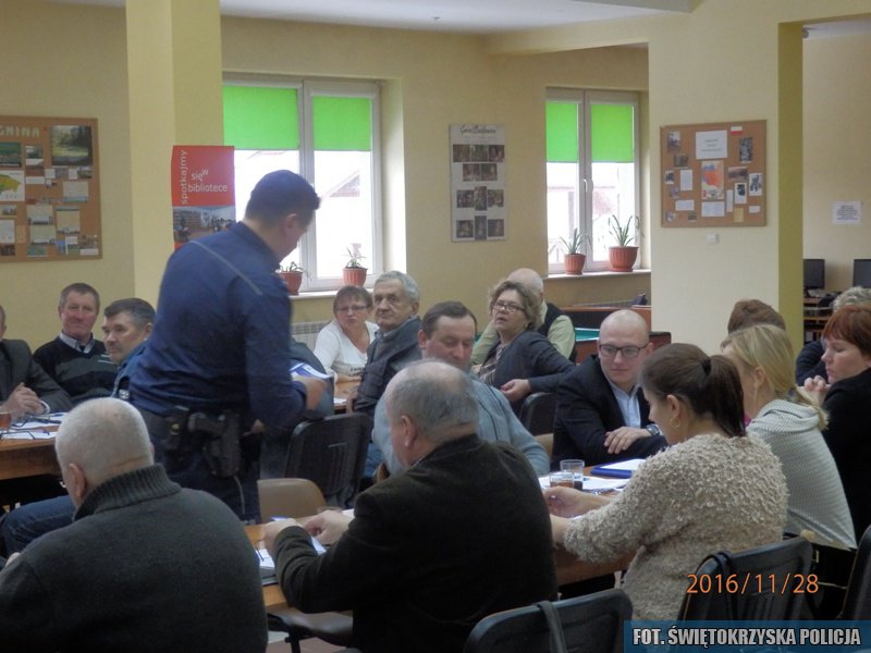 Podczas prelekcji funkcjonariusze nawiązali do niskich temperatur i panującej zimowej aury apelując do zgromadzonych sołtysów o pomoc w ewentualnych ustaleniach dotyczących osób starszych i samotnie zamieszkujących jak również zapewnienie na czas zimy osobom bezdomnym schronienia oraz zapewnianie opału przez Ośrodki Pomocy Społecznej.