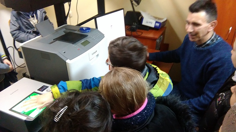 Dużym zainteresowaniem dzieci i młodzieży cieszyła się wizyta w pomieszczeniach technika kryminalistyki, gdzie wszystkie zwiedzające grupy dzieci i młodzież miały najwięcej pytań na temat pracy i wykonywanych zadań i oczywiście ujawniania odcisków linii papilarnych.