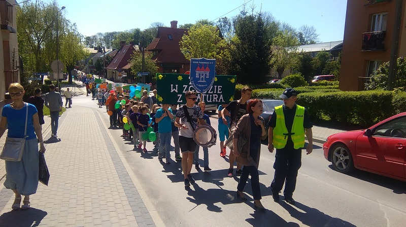Uczniowie i nauczyciele Samorządowego Zespołu Szkół nr 2 w Opatowie przeszli wczoraj ulicami miasta. Poruszając się barwnym korowodem, niosąc banery zachęcali mieszkańców do uczestnictwa w happeningu zgodnie z mottem „Żyj w zgodzie z naturą”. Do udziału w prowadzonych działaniach zaproszeni zostali opatowscy dzielnicowi, którzy wzięli udział w organizowanym pochodzie. Policjanci opatowskiej drogówki wraz z funkcjonariuszami straży miejskiej zadbali o bezpieczeństwo na ulicach Opatowa podczas przemarszu.