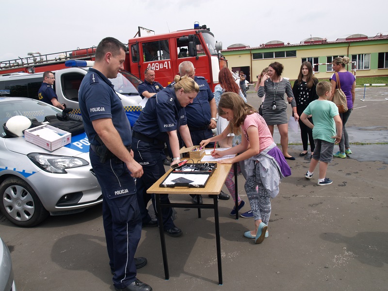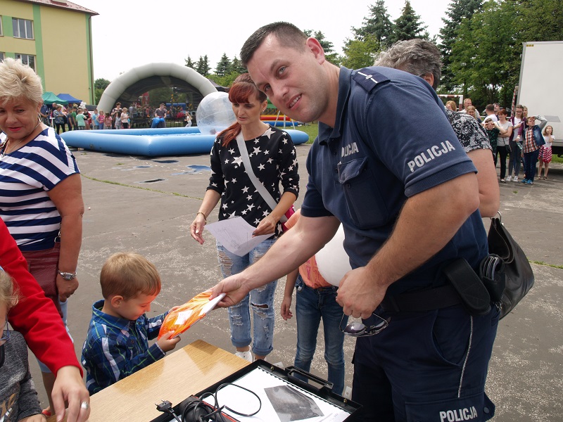 W sobotę przy Zespole Szkół im. Marii Skłodowskiej-Curie w Ożarowie odbywał się festyn pod hasłem ,,Już Wakacje”. Podobnie jak w ubiegłych latach podczas świętowania rozpoczęcia wakacji nie mogło zabraknąć policjantów. Stoisko policyjne cieszyło się dużym zainteresowaniem. Maluchy odwiedzając stanowisko policjantów malując kolorowanki uczyły się zasad ruchu drogowego, numerów alarmowych i bezpiecznych zachowań podczas letniego wypoczynku. Dzieci które wykazały się wiedzą na temat bezpieczeństwa otrzymywały upominki. Wszystkie dzieciaki otrzymały również kamizelki odblaskowe lub odblaski. Jak wiadomo w czasie wakacji dużo czasu spędzamy jeżdżąc na rowerze. Na stoisku policyjnym można było oznakować rower. Dużą atrakcją, zarówno dla dorosłych jak i dla dzieci, była prezentacja radiowozu i motocykli oraz policyjnego wyposażenia wykorzystywanego podczas zabezpieczenia imprez masowych.