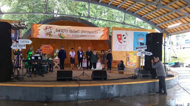 Podczas obchodów V-go Święta Krówki Opatowskiej stróże prawa z Komendy Wojewódzkiej Policji w Kielcach i Opatowskiej komendy wzięli udział w zorganizowanym pikniku. Dzieci tuż przed inauguracją roku szkolnego dowiedziały się, jak bezpiecznie korzystać z dróg, dlaczego należy nosić odblaski oraz jakie zagrożenia mogą napotkać na drodze poruszając się pieszo lub na rowerze.