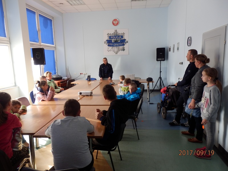 Dzisiaj Komedę Powiatową Policji w Opatowie odwiedziła grupa wychowanków Specjalnego Ośrodka Szkolno-Wychowawczego w Niemienicach. Dzielnicowa sierz. szt. Katarzyna Czesna-Wójcik opowiedziała maluchom o pracy stróżów prawa. Policjantka nie zapomniała również uczulić milusińskich przed niebezpieczeństwami, jakie mogą na nie czyhać. Natomiast st. asp. Grzegorz Rusak rozdał dzieciom kolorowe odblaski.