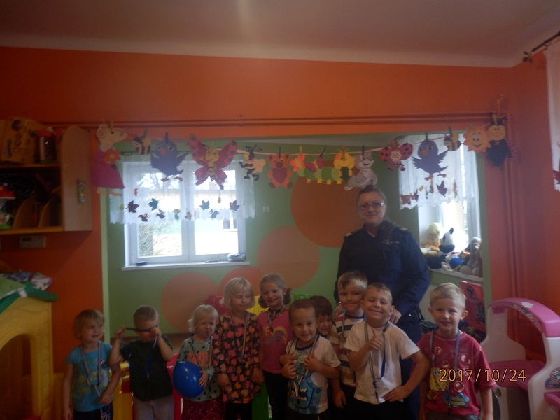 Wczoraj dzielnicowa sierż. szt. Katarzyna Czesna-Wójcik odwiedziła milusińskich z przedszkola Oaza we Włostowie.