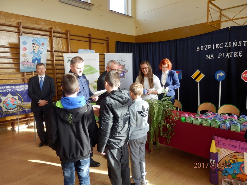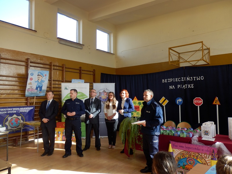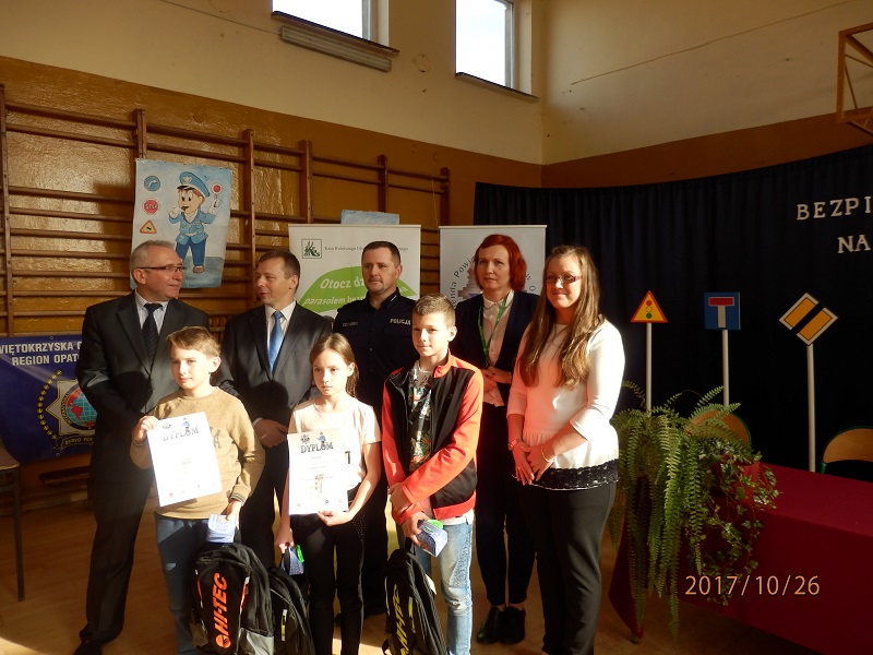 Z rąk Zastępcy Komendanta Powiatowego Policji w Opatowie mł. insp. Andrzeja Skowrońskiego, Naczelnika Wydziału Prewencji madkom. Gustawa Szczepańskiego, kierownika Terenowej Placówki KRUS Małgorzaty Jalowskiej, Prezesa PGKiM w Opatowie Grzegorza Gajewskiego, Prezesa Okręgowej Spółdzielni Mleczarskiej w Opatowie Romana Marchewki oraz przedstawiciela IPA Katarzyny Czesnej –Wójcik wyróżnieni otrzymali cenne nagrody i dyplomy. Wszyscy uczestnicy konkursu otrzymali kolorowe odblaski oraz krówki opatowskie.
