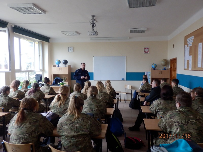 Uczniom przestawiono również sposoby oraz miejsca gdzie odbywają się szkolenia podstawowe i specjalistyczne funkcjonariuszy Policji. Mundurowi przypomnieli uczniom także o odpowiedzialności karnej nieletnich oraz dorosłych.