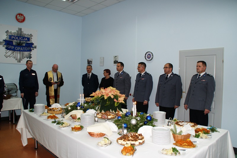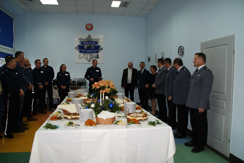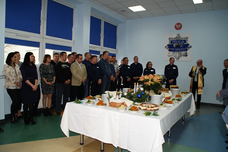 Spotkanie opłatkowe rozpoczął insp. Ryszard Komański Komendant Powiatowy Policji w Opatowie, składając wszystkim obecnym świąteczne życzenia Komendant podziękował policjantom i pracownikom cywilnym za ciężką i pełną poświęceń służbę. Następnie świąteczne życzenia złożył Komendant Wojewódzki Policji w Kielcach insp. Dariusz Augustyniak oraz Prokurator Rejonowy Renata Orłowska. Jak co roku, w spotkaniu uczestniczyła kadra kierownicza funkcjonariusze, pracownicy cywilni oraz zaproszeni goście.