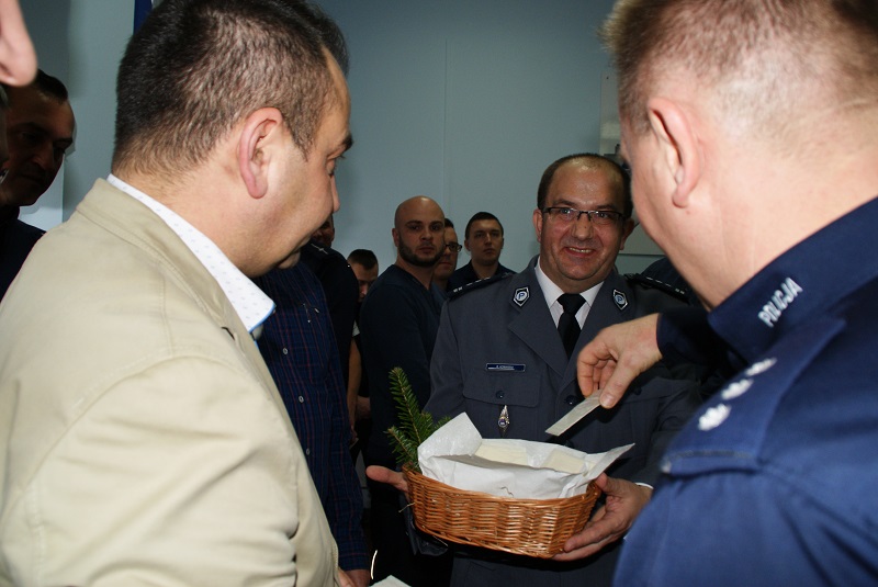 Ks. Kapelan Marek Łuszczyński poświęcił opłatek i odmówił modlitwę. Wszyscy zgromadzeni złożyli sobie na wzajem życzenia łamiąc się opłatkiem.