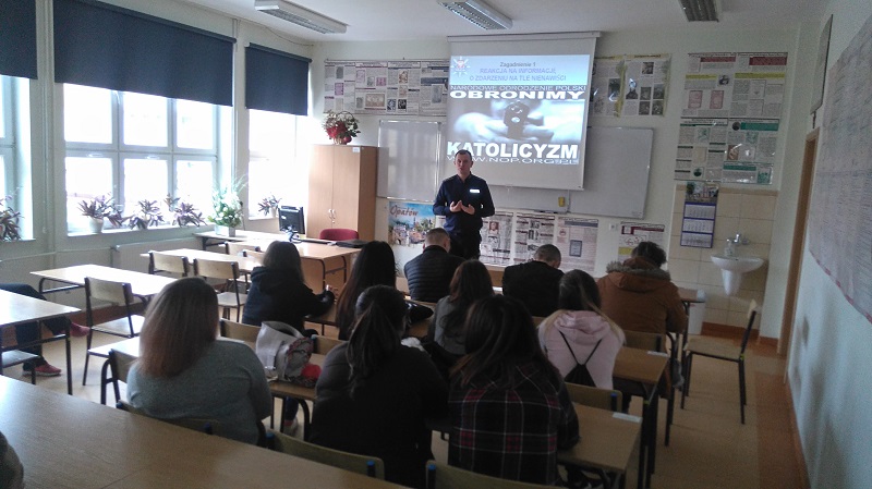 Zaplanowane spotkania z młodzieżą zostały przeprowadzone przez dzielnicowych. Podczas prelekcji funkcjonariusze uświadamiali młodzież, która już niebawem będzie stawiać pierwszy kroki na rynku pracy krajowym lub zagranicznym. Często wszystkim handel Ludźmi kojarzy się tylko ze sprzedażą dzieci czy też dorosłych. Prowadzone spotkania mają również uświadomić młodym ludziom, że ta tematyka wiąże się również z częstym wyzyskiwaniem i upokarzaniem w podejmowanej przez nich pracy. Tematy te powiązane są również z nietolerancją nierównym traktowaniem ze względu na płeć, kolor skóry czy narodowość. Mł.asp. Radosław Kaptur przeprowadził praktyczny pokaz jak poruszać się po Krajowej Mapie Zagrożeń Bezpieczeństwa oraz omówił do czego ona służy.