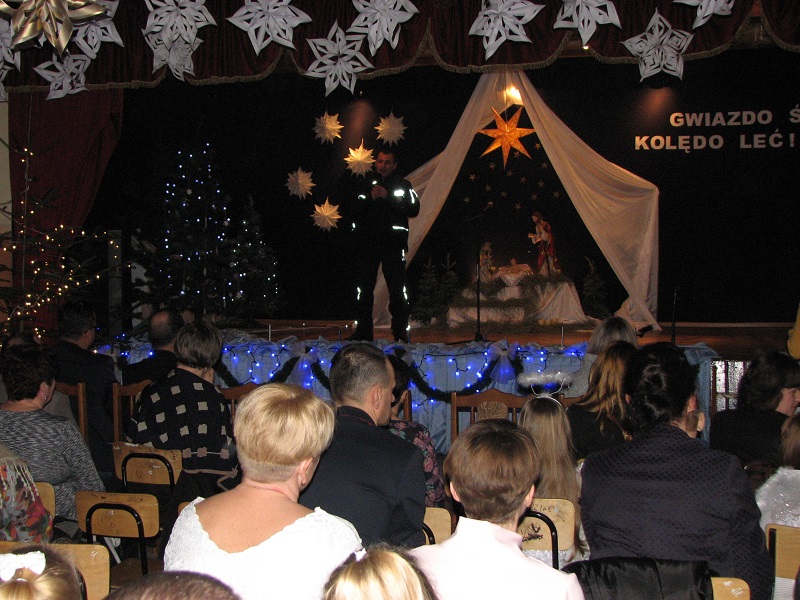 Wczoraj w Szkole Podstawowej odbył się przegląd kolęd i pastorałek. Organizatorzy do udziału w spotkaniu zaprosili również dzielnicowego gminy Iwaniska. St. asp. Radosław Krakowiak wykorzystał okazję do rozmowy z mieszkańcami na temat bezpieczeństwa. Policjant omówił funkcjonowanie Krajowej Mapy Zagrożeń Bezpieczeństwa i zachęcał do korzystania z tego narzędzia. Dzielnicowy wskazywał, że dzięki niemu mieszkańcy naszego powiatu mają możliwość wskazywania Policji zagrożeń, które według nich są istotne z punktu widzenia bezpieczeństwa.
