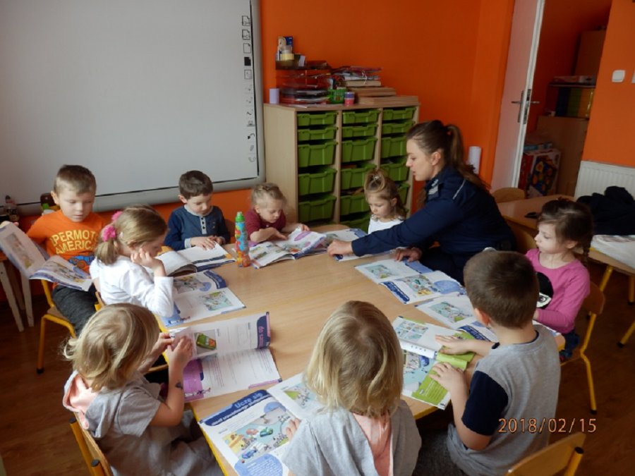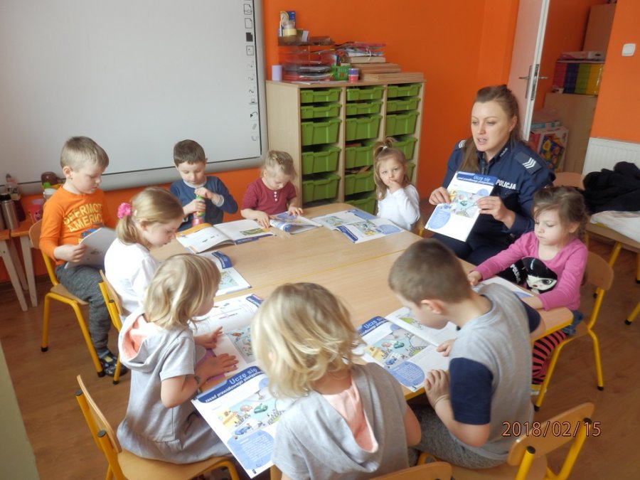 Wczoraj dzielnicowa sierż. szt. Katarzyna Czesna-Wójcik odwiedziła maluchy w przedszkolu Oaza we Włostowie. Policjantka podczas spotkania rozmawiała z dziećmi o bezpiecznych zachowaniach na drodze i prawidłowym przechodzeniu przez jezdnię. W trakcie spotkania maluchy nauczyły się numerów alarmowych , z których należy korzystać w sytuacji zagrożenia. Funkcjonariuszka przypomniała o zagrożeniach czyhających na dzieci w trakcie ferii zimowych. Przestrzegała przed ślizganiem się na skutych lodem jeziorach, stawach i rzekach, a także przed zjeżdżaniem z górek znajdujących się blisko ruchliwych ulic.