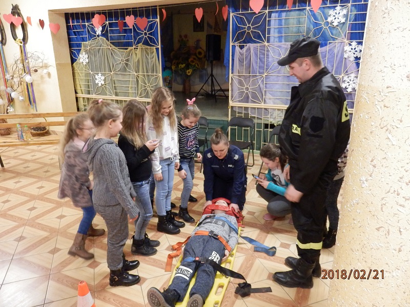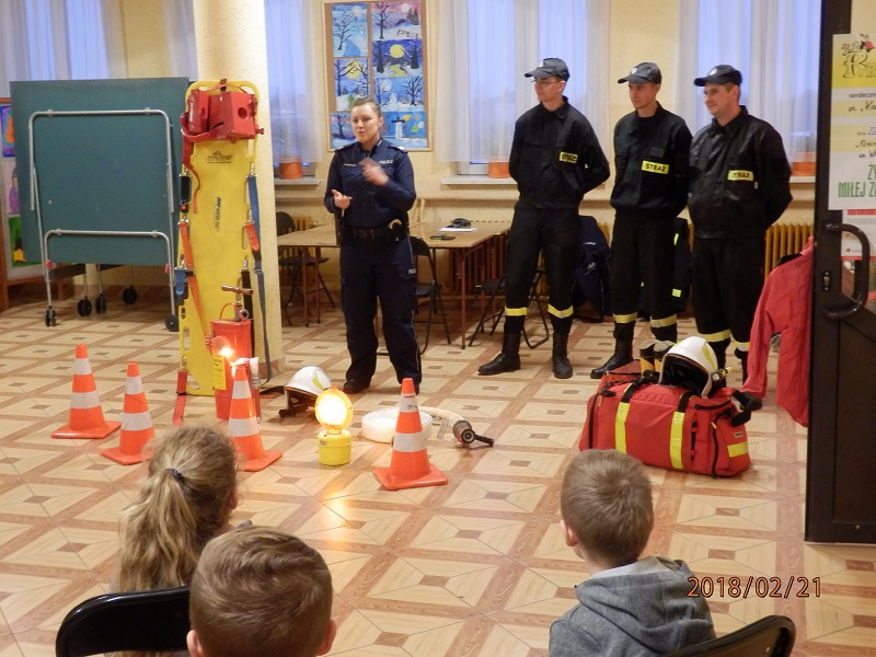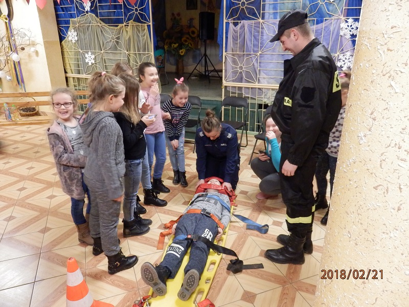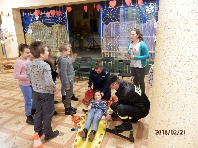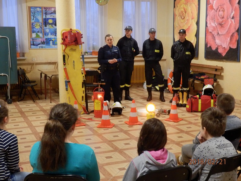 Ferie to czas odpoczynku od nauki szkolnej, jednak w Gminnym Ośrodku Kultury dzieci chętnie uczestniczyły w zajęciach z policjantami i strażakami. Podczas spotkania maluchy dowiedziały się o niebezpieczeństwach jakie czyhają na nie podczas zimowych zabaw, ale również jak się ich ustrzec