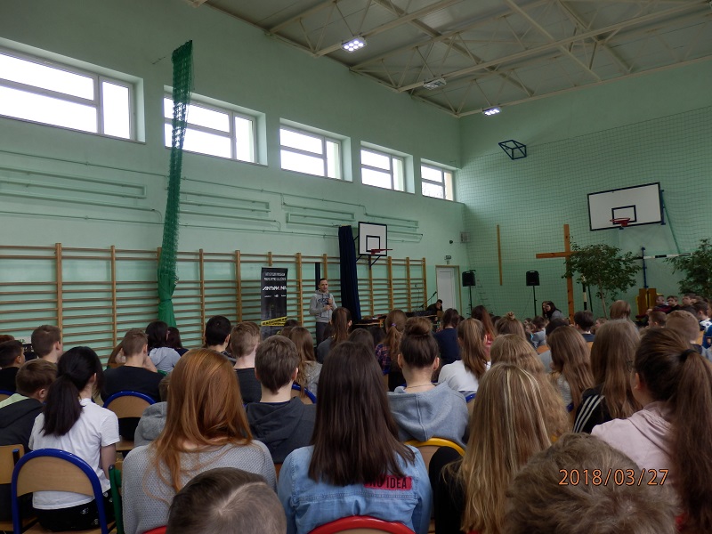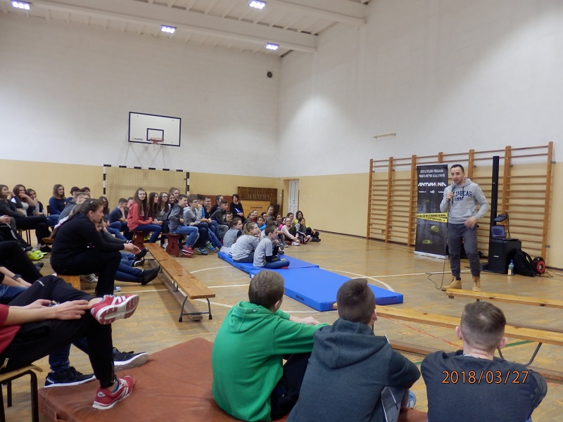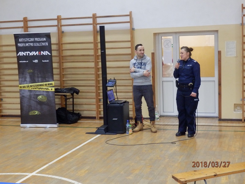 Dzielnicowa gminy Lipnik podczas spotkań porusza tematy mające na celu uchronienie młodych ludzi od zagrożeń jakie niosą za sobą środki odurzające. Do udziału w przedsięwzięciu policjantka zaprosiła między innymi Gminną Komisję Rozwiązywania Problemów Alkoholowych. Spotkania profilaktyczne z młodzieżą zaczynały się od krótkiej prelekcji prowadzonej przez sierż. szt. Katarzynę Czesną-Wójcik na temat szkodliwości zażywania środków odurzających w tym również dopalaczy oraz o związanej z tym odpowiedzialności prawnej. Następnym punktem spotkań był artystyczny program profilaktyki uzależnień “Antymina – nie daj się wysterować na minę!” przedstawiony przez Mirosława „Kolah” Kolczyka – rzeszowskiego rapera. “Antymina jest innowacyjną formą przekazu informacji na temat zagrożeń, jakie niosą ze sobą tytułowe miny, którymi są narkotyki, dopalacze, alkohol czy kontakt ze światem przestępczym.
