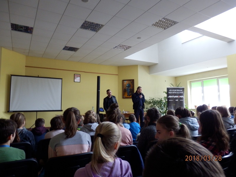 Wczoraj dzielnicowy mł. asp. Radosław Kaptur spotkał się z młodymi mieszkańcami gminy Baćkowice .Podczas spotkania rozmawiał z młodymi ludźmi na temat uzależnień, jakim mogą ulec młodzi ludzie sięgający po substancje psychoaktywne. Omówił również jakże aktualną problematykę dopalaczy i ich wpływu na młody organizm. W spotkaniu z młodzieżą udział wziął również Mirosław „Kolah” Kolczyk. Rzeszowski raper zaprezentował artystyczny program profilaktyki uzależnień “Antymina – nie daj się wysterować na minę!” “Antymina jest innowacyjną formą przekazu informacji na temat zagrożeń, jakie niosą ze sobą tytułowe miny, którymi są narkotyki, dopalacze, alkohol czy kontakt ze światem przestępczym.