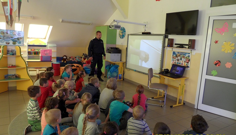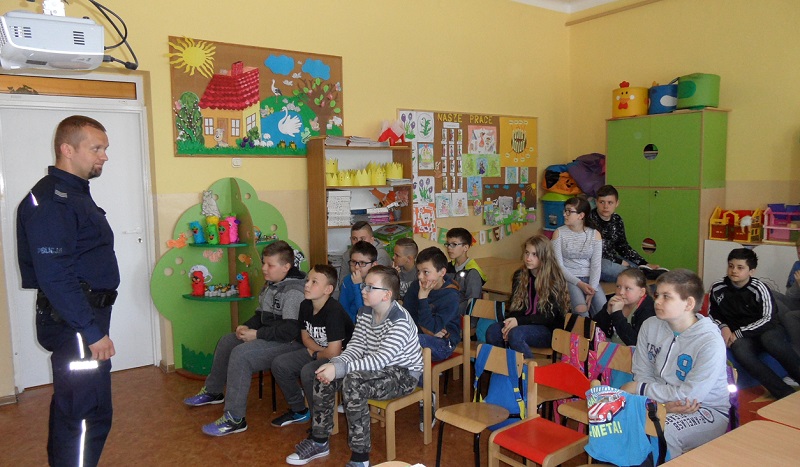 W ubiegłym tygodniu dzielnicowy sierż. szt. Konrad Ozdoba spotykał się z uczniami Szkół Podstawowych ze Stodół, Gierczyc i Wojciechowic. Uczniom najmłodszych klas policjant przypomniał podstawowe zasady bezpieczeństwa przede wszystkim w kwestii ruchu drogowego i przepisów dotyczących noszenia elementów odblaskowych. Policjant zwracał maluchom uwagę na niebezpieczeństwa jakie mogą na nich czyhać podczas zabaw w domu, chociażby nieostrożne używanie urządzeń elektrycznych. Natomiast z uczniami klas starszych, dzielnicowy rozmawiał o właściwym zachowaniu, a także przybliżył tematykę odpowiedzialności karnej osób nieletnich za popełnione czyny karalne. Uczniowie dowiedzieli się także, jakie zachowania są przejawami demoralizacji i jak powinni się zachowywać, aby nie wejść w konflikt z prawem. Sierż. szt. Konrad Ozdoba zwrócił również uwagę na zagrożenia pojawiające się w Internecie dotyczące tzw. "cyberprzemocy".