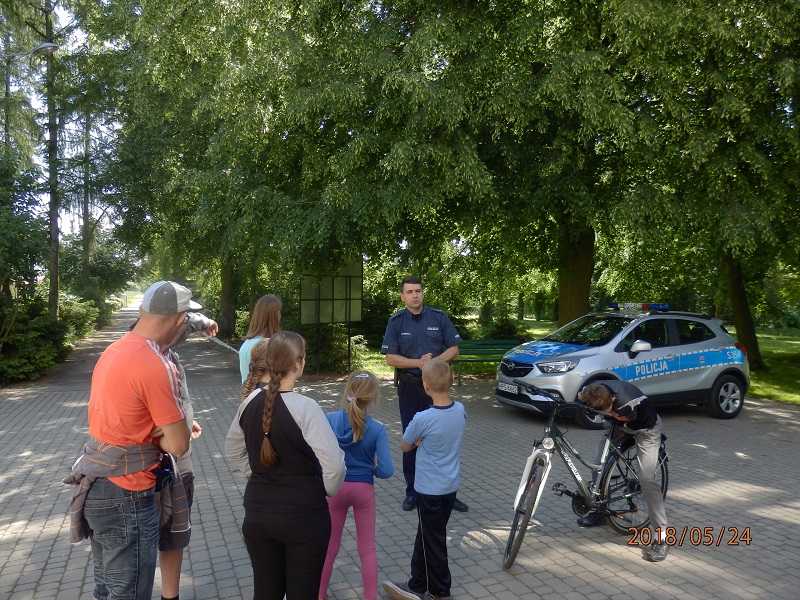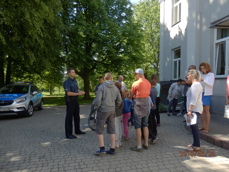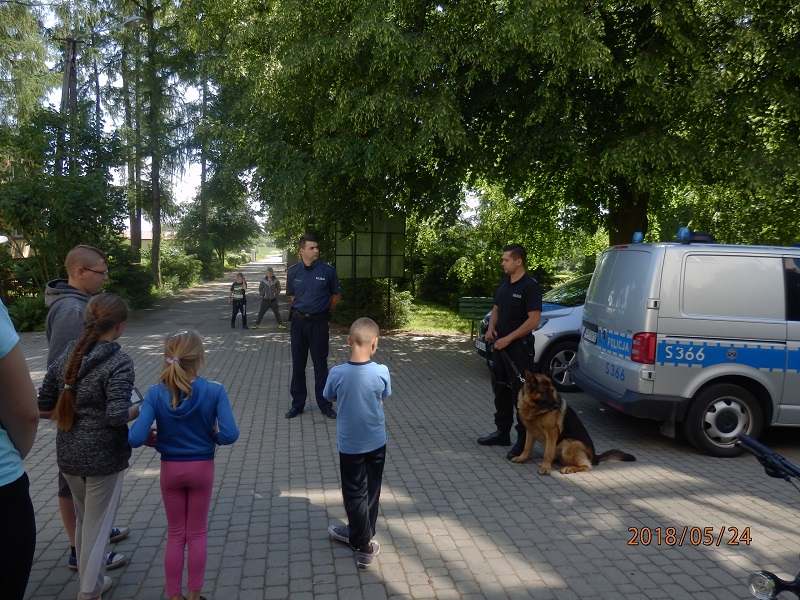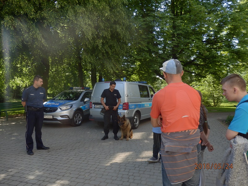 Pierwszą była możliwość obejrzenia i pogłaskania czworonożnego „funkcjonariusza” Argo. Jego przewodnik asp. Arkadiusz Ścibór opowiedział o pracy policjanta oraz na czym polega praca z policyjnym psem, jakie zwierzak musi przejść szkolenia i do czego może być wykorzystany. Uczestnicy spotkania dowiedzieli się jak bezpiecznie postępować ze zwierzętami i jak zachować się w przypadku ewentualnego ataku przez czworonoga. Następnie uczniowie mieli możliwość obejrzeć policyjne radiowozy. Na zakończenie spotkania dzieci otrzymały od policjantów słodkie upominki.