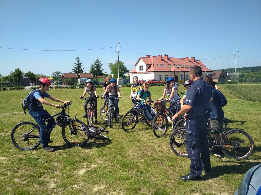 Wczoraj w ramach działań profilaktycznych „Kręci mnie bezpieczeństwo prze cały rok szkolny” grono pedagogiczne i dzielnicowy st. asp. Radosław Krakowiak dla uczniów z Iwanisk zorganizowali wycieczkę rowerową. Młodzi cykliści mogli podczas wczorajszej przejażdżki wykorzystać wiedzę zdobytą podczas przygotowań do uzyskania kart rowerowych. Przed wyjazdem młodym ludziom przypomniano zasady korzystani ze ścieżki rowerowej oraz przepisy dotyczące jazdy w kolumnie. Po dotarciu na metę wycieczki dzielnicowy st. asp. Radosław Krakowiak rozmawiał z młodymi ludźmi o bezpiecznym spędzaniu czasu wolnego.