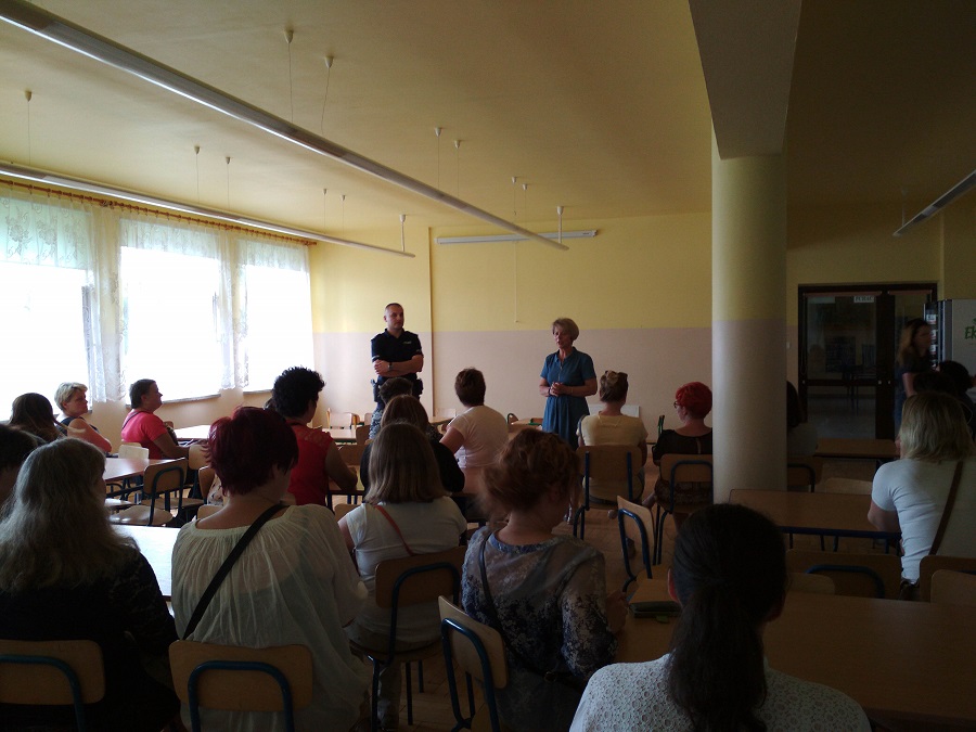 Dzielnicowy wziął również udział w spotkaniu rodziców uczniów Zespołu Szkół w Bidzinach. Z rodzicami i opiekunami młodych mieszkańców naszego powiatu, poruszył jakże wciąż aktualną problematykę dopalaczy i ich wpływu na młody organizm. Spotkanie to funkcjonariusz wykorzystał również do promowania Krajowej Mapy Zagrożeń Bezpieczeństwa.