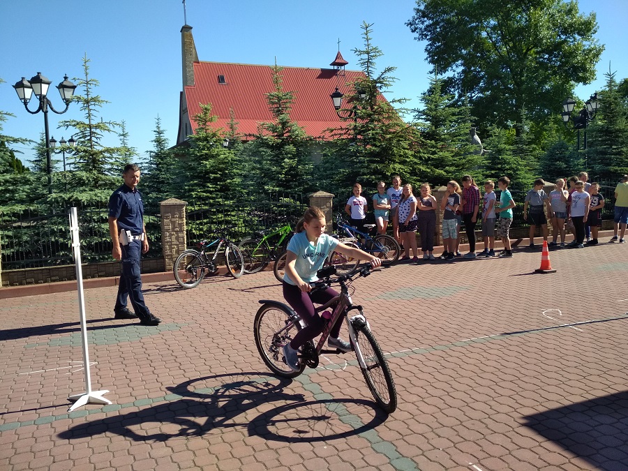 Tradycją stało się, że przed wakacjami dzielnicowi wraz z policjantami ruchu drogowego przeprowadzają egzaminy na kartę rowerową. Wczoraj przeprowadzony egzamin podobnie jak ten na prawo jazdy składał się części teoretycznej i praktycznej. Część teoretyczna to test sprawdzający znajomość znaków drogowych, zasad przejazdu przez skrzyżowanie, przepisów dotyczących rowerzystów i obowiązkowego wyposażenia jednośladów. Następnie przyszli kierowcy na wyznaczonym torze prezentowali praktyczne umiejętności.