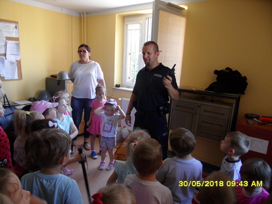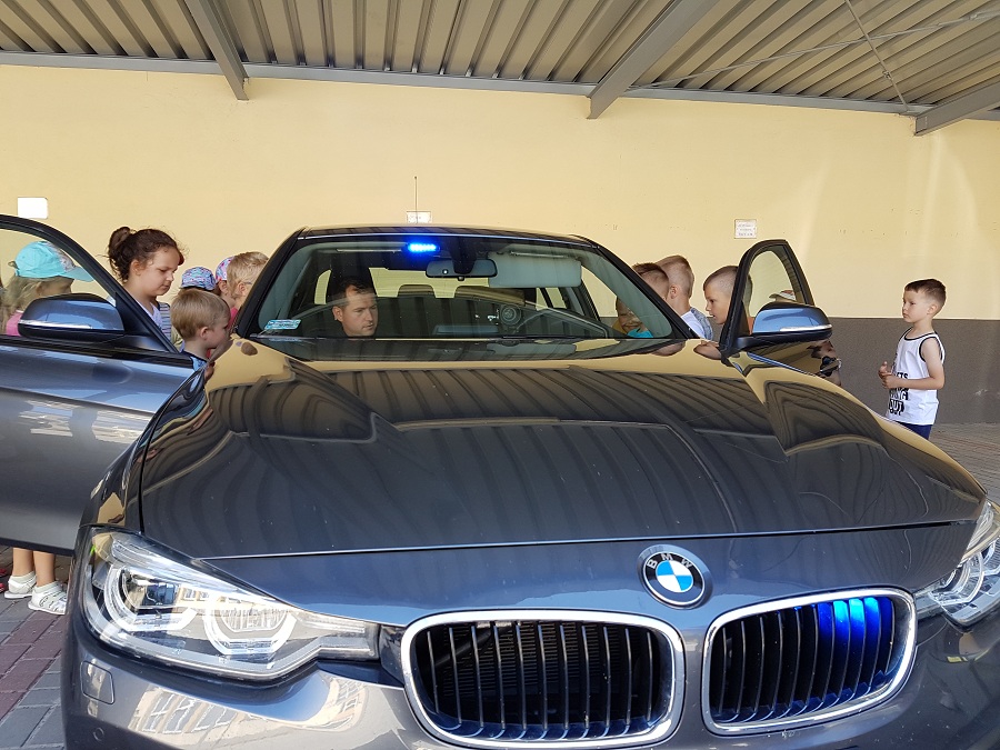 Mali goście odwiedzili również policjantów w Ożarowie. Ożarowski komisariat miały możliwość obejrzeć przedszkolaki z Bidzin. Dzielnicowy opowiedział maluchom o pracy policjantów. Milusińscy obejrzeli również policyjne radiowozy.