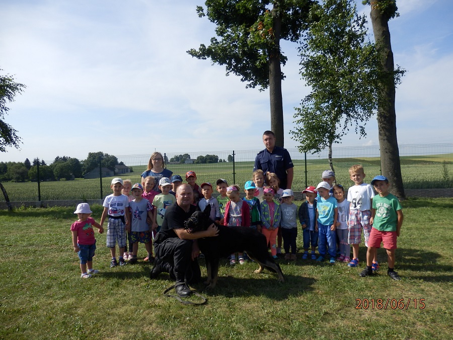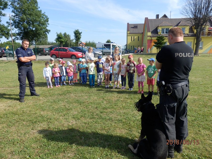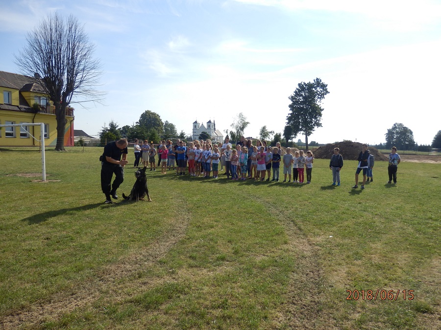 Podczas spotkań z najmłodszymi policjantom towarzyszy czworonożny funkcjonariusz „Luks”. Dzieci dowiadują się jak należy zachować się w przypadku kontaktu z obcymi zwierzętami. Przewodnik psa służbowego rozmawiał z dziećmi i młodzieżą, jak należy dbać o swoich czworonożnych przyjaciół w gorące dni.