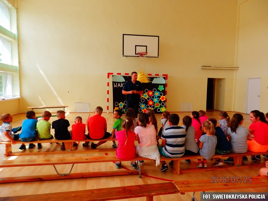Wczoraj dzielnicowy z opatowskiej komendy odwiedził uczestników półkolonii w gminie Baćkowice. Podczas spotkania dzieci dowiedziały się jak być bezpiecznym na wakacjach.