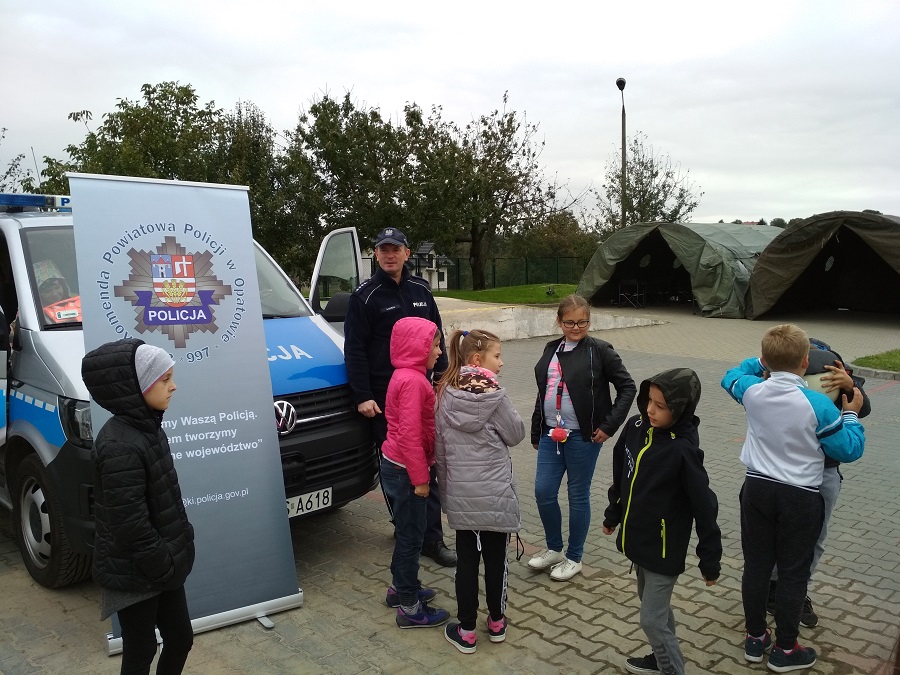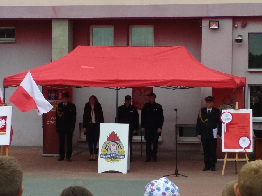 Wczoraj strażacy w Komedzie Powiatowej Państwowej Straży Pożarnej w Opatowie zorganizowali Dzień Otwarty. Strażacy do współpracy zaprosili również opatowskich policjantów. W Jednym z elementów wczorajszej imprezy były obchody odzyskania przez Polskę niepodległości. W uroczystości uczestniczył również Komendant Powiatowy Policji w Opatowie insp. Ryszard Komański. W pierwszej kolejności uczniowie z opatowskich szkół poznali genezę godła, flagi oraz hymnu. Asp. szt. Grzegorz Rusak opowiedział uczestnikom spotkania jak należy zachowywać się podczas uroczystości państwowych. Po tej oficjalnej części młodzi mieszkańcy Opatowa zwiedzali opatowską jednostkę straży pożarnej. Na placu przed budynkiem policjanci również przygotowali kilka atrakcji. Stróże prawa zaprezentowali radiowóz patrolowców oraz policyjne wyposażenie wykorzystywane podczas zabezpieczenia imprez masowych. Przez chwilę każdy mógł zostać policjantem wsiadając do radiowozu. Starszych uczestników spotkania policjanci zachęcali do wstąpienia w szeregi policji.