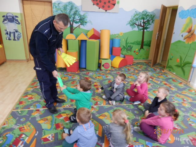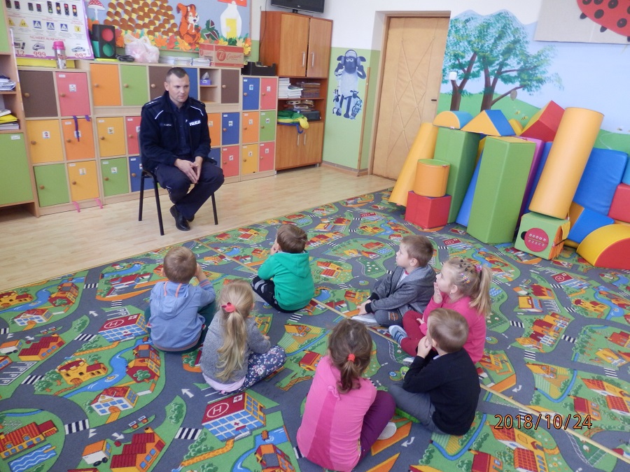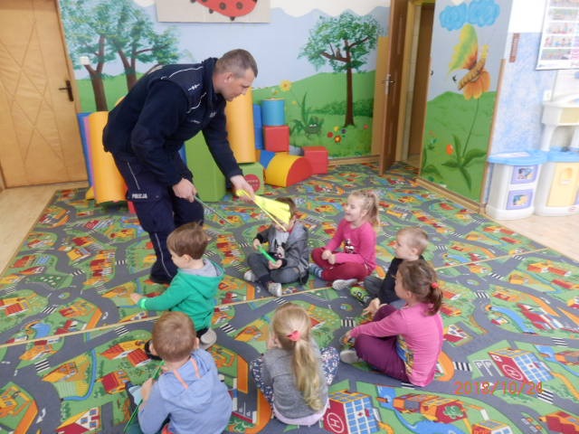 Wczoraj dzielnicowy asp. Radosław Kaptur odwiedził milusińskich z przedszkola w Sadowiu.