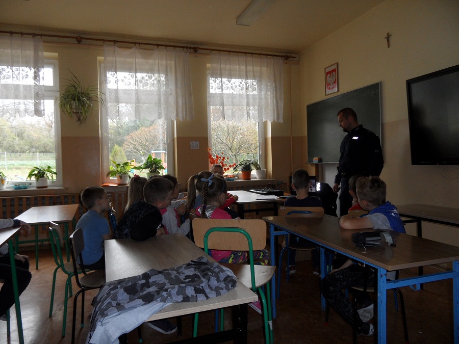 W piątek mł. asp. Konrad Ozdoba spotkał się z dziećmi ze Szkoły Podstawowej oraz Przedszkola w Gierczycach, aby rozmawiać o bezpieczeństwie. Dzielnicowy przypomniał dzieciom jak należy prawidłowo poruszać się po drodze, o obowiązku korzystania z chodnika oraz co zrobić gdy go nie ma. Policjant uświadamiał najmłodszym, że podstawą bezpiecznego dotarcia do szkoły i domu jest także korzystanie z fotelików i pasów bezpieczeństwa. Z uczniami starszych klas dzielnicowy rozmawiał o bezpiecznym korzystaniu z Internetu. Spotkania takie pozwalają wypracować prawidłowe sposoby zachowań zarówno u maluchów jak i młodzieży.