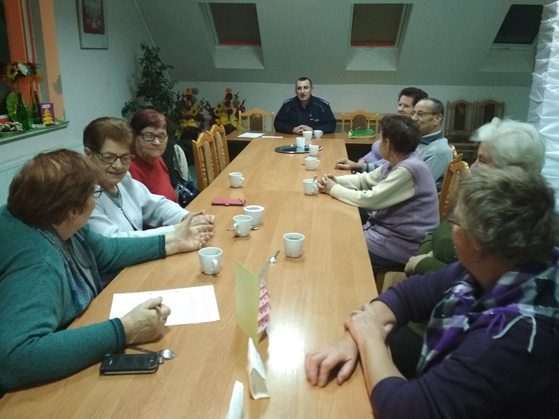 Dzielnicowi omówili sposoby działań przestępców zwracając uwagę na przestępstwa metodą na wnuczka, inkasenta czy pracownika socjalnego. Wszyscy uczestnicy otrzymali od dzielnicowych ulotkę informującą jak nie stać się ofiarą przestępstwa.