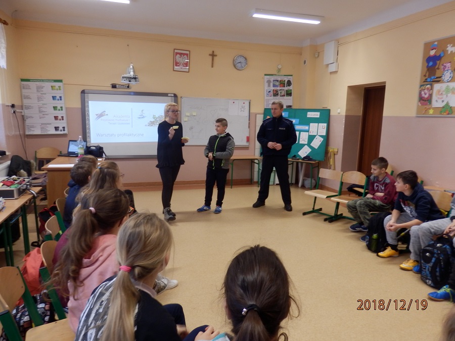 W środę dzielnicowy mł. asp. Paweł Łasak spotkał się uczniami Szkoły Podstawowej w Lipniku i we Włostowie. W spotkaniu z uczniami włostowskiej szkoły oprócz dzielnicowego uczestniczyła przedstawicielka Akademii Uzależnień. Podczas prelekcji dzielnicowy rozmawiał z młodymi ludźmi na temat uzależnień, jakim mogą ulec młodzi ludzie sięgający po substancje psychoaktywne. Omówił również jakże aktualną problematykę dopalaczy i ich wpływu na organizm.