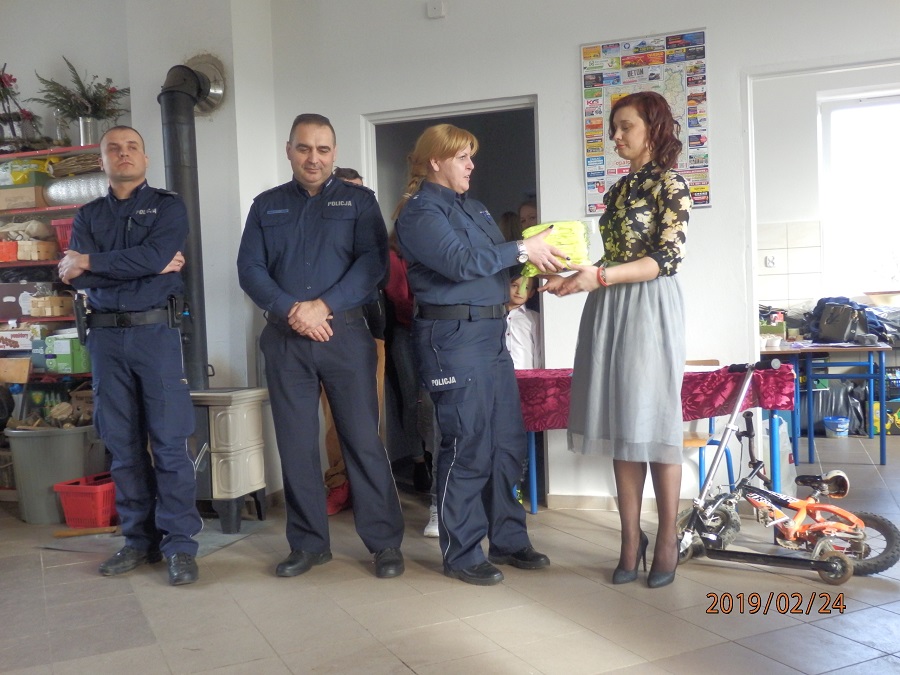 W tym roku obchodźmy 100-lecie powstania Policji. Dla uczczenia tego wydarzenia przez cały rok będą odbywały się uroczystości w naszej małej ojczyźnie – powiecie opatowskim. Wczoraj uroczystość taką dla opatowskich mundurowych zorganizowali członkowie Klubu Aktywni Czekarzwice wspólnie z Międzynarodowym Stowarzyszeniem Policji IPA Region Powiśla. W tej małej uroczystości udział wziął Komendant Komisariatu Policji w Ożarowie nadkom. Zbigniew Gaweł, podkom Agata Frejlich – oficer prasowy Komendanta Powiatowego Policji w Ożarowie oraz ożarowski dzielnicowy sierż. szt. Piotr Sałata. Na rozpoczęcie spotkania Katarzyna Czesna-Wójcik z Międzynarodowego Stowarzyszenia Policji IPA Region Powiśla przedstawiła uczestnikom spotkania krótką historię powstania Policji Państwowej. Następnie członkowie Klubu Aktywni Czekarzwice przestawili krótki skecz przedstawiający „dobór do policji”. Z kolei dzieci z Wyszmontowa zaprezentowały pokaz technik i taktyk interwencji na wesoło. Swój występ zakończyły piosenką „Chłopcy Radarowcy”. Komendant Komisariatu Policji w Ożarowie nadkom. Zbigniew Gaweł wręczył młodym artystom słodkie upominki. Spotkanie to opatowscy policjanci wykorzystali aby zatroszczyć się o bezpieczeństwo mieszkańców naszego powiatu. W kilku słowach opowiedzieli jak należy postępować aby nie stać się ofiarą oszustów oraz jak zabezpieczyć swoje mienie przed kradzieżą. Podczas spotkania policjanci zapoznali również mieszkańców Czekarzeiwc z aplikacją Krajowa Mapa Zagrożeń Bezpieczeństwa. Na zakończenie spotkania mundurowi przekazali dla Klubu Aktywni Czekarzwice kamizelki odblaskowe ufundowane przez Międzynarodowe Stowarzyszenie Policji IPA Region Powiśla.