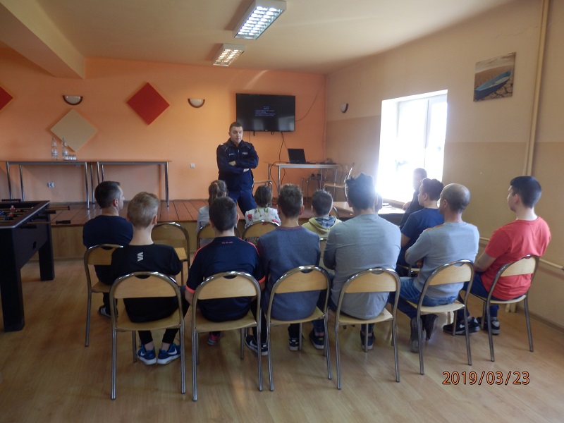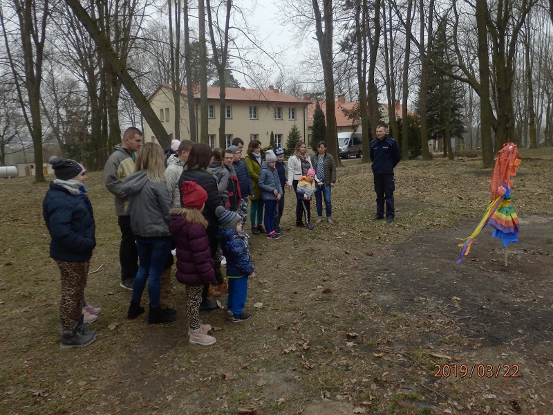 Podczas obchodów pierwszego dnia wiosny inny dzielnicowy, asp. Radosław Kaptur spotkał się z wychowankami Specjalnego Ośrodka Szkolno-Wychowawczego w Niemienicach. Funkcjonariusz omówił z wychowankami tematykę poruszania się po drogach jak też i kontaktów dzieci z nieznajomymi osobami. Jedną z atrakcji kończącej spotkanie było topienie marzanny.