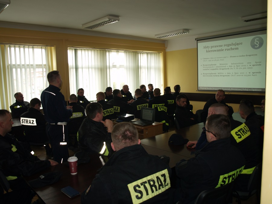 Państwowa Straż Pożarna w Opatowie w ramach współpracy z Komendą Powiatową Policji w Opatowie zorganizowała w ostatnią niedzielę szkolenie dla strażaków OSP z terenu powiatu. Szkolenie przeprowadzili policjanci Wydziału Ruchu Drogowego Komendy Powiatowej Policji w Opatowie.