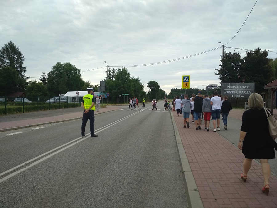 Uczniowie i nauczyciele Szkoły Podstawowej w Ujeździe, zorganizowali bieg Niepodległości. Policjanci opatowskiej drogówki oraz dzielnicowi zadbali o bezpieczeństwo o bezpieczeństwo uczestników wydarzenia. Następnie dla uczestników tego niecodziennego wydarzenia odbył się Piknik na zamku Krzyżtopór. Tu uczniowie Szkoły Podstawowej w Ujeździe uczestniczyli w spotkaniu z dzielnicowym. St. asp. Radosław Krakowiak rozmawiał z dziećmi i młodzieżą na temat bezpieczeństwa podczas zbliżających się wakacji. Głównym celem spotkania było propagowanie właściwego zachowania w rejonie akwenów, w tym zasad bezpiecznej kąpieli. Dzielnicowy przypomniał i omówili zasady jakimi powinny kierować się osoby wybierające się w miejsce odpoczynku. Podczas spotkania st. asp. Radosław Krakowiak omówił również z dziećmi zagrożenia jakie na nich mogą czekać podczas spędzania wolnego czasu w domu, czy na placu zabaw.