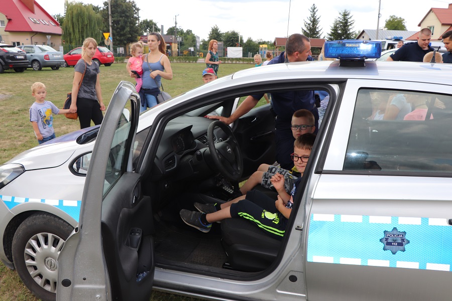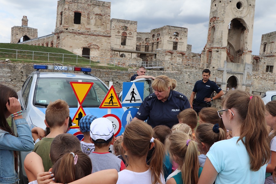Na błoniach Zamku dzieci miały okazję zobaczyć jakim sprzętem dysponuje policja oraz przymierzając części umundurowania, które jest wykorzystywane podczas zabezpieczenia imprez masowych. Dużą zainteresowaniem cieszyły się policyjne radiowozy. Podczas spotkania dzieci miały również okazję wykazać się znajomością znaków drogowych.