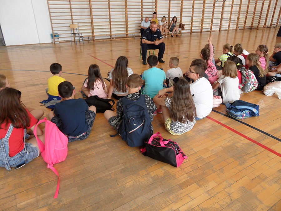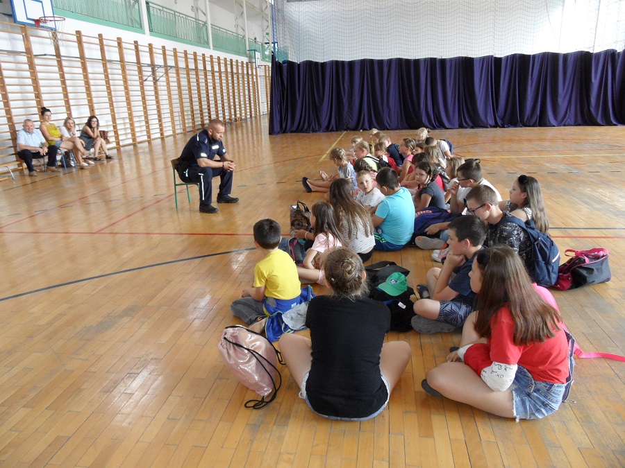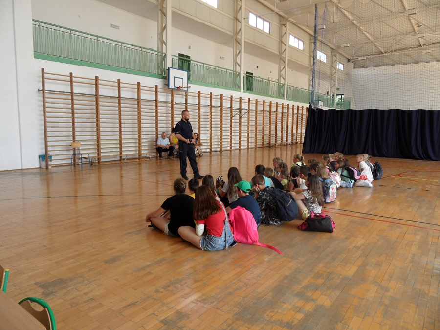 Wakacje trwają w najlepsze. Okres słodkiej beztroski to także czas wielu niebezpieczeństw, które czyhają na każdym kroku. Jak się ich ustrzec, dzieciom spędzającym wolny czas w Szkole Podstawowej w Bidzinach opowiedział mł. asp. Konrad Ozdoba. Podczas prelekcji policjant przypomniał najmłodszym o telefonach alarmowych i właściwej reakcji w sytuacjach zagrożenia. Dzielnicowi przypomniał również uczestnikom zorganizowanego wypoczynku podstawowe zasady bezpiecznego zachowania podczas letniego wypoczynku. W trakcie spotkania poruszono tematy związane z bezpiecznym zachowaniem nad wodą, w kontaktach z osobami obcymi oraz bezpiecznego wypoczynku w miejscach zamieszkania. Dzielnicowy z najmłodszymi mieszkańcami gminy Wojciechowice rozmawiał również o bezpieczeństwie podczas korzystania z dróg.