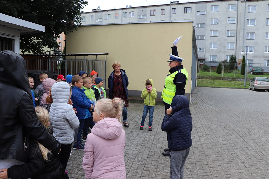 Po wizycie w budynku opatowskiej jednostki odbyła się część praktyczna spotkania, podczas której dzieci pod czujnym okiem Naczelnika Wydziału Ruchu Drogowego nadkom. Andrzeja Kolery i dzielnicowego mł. asp. Mateusza Papaja ćwiczyły swoje umiejętności. W rejonie przejścia dla pieszych z sygnalizacją świetlną na ul. Kilińskiego w Opatowie dzieci uczyły się jak bezpiecznie z niego korzystać.