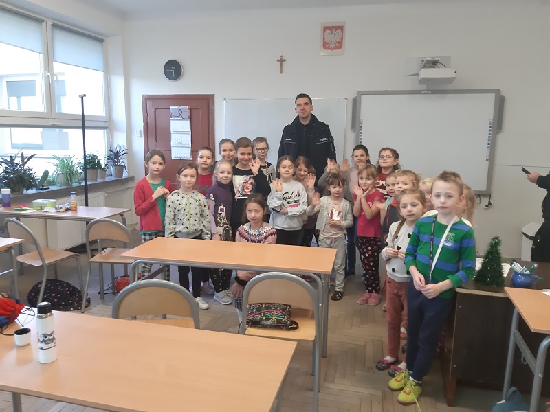 Opatowscy policjanci odwiedzili również dzieci spędzające czas wolny w Opatowskim Ośrodku Kultury i przedszkolu. Funkcjonariuszei opowiadali dzieciom, jak bezpiecznie bawić się i spędzać czas wolny. Dzielnicowy omówił zasady bezpiecznego korzystania z lodowisk, stoków narciarskich i torów saneczkowych. Ważnym zagadnieniem, które było również przekazane podczas spotkań to bezpieczeństwo w ruchu drogowym. Dzieci zapoznały się z zasadami bezpiecznego poruszania się po drogach oraz dowiedziały, dlaczego warto nosić odblaski.