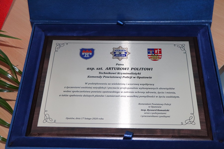 Odchodzący na emeryturę otrzymał pamiątkowy ryngraf, a także podziękowania za wspólną służbę i zaangażowanie w zapewnianie bezpieczeństwa w powiecie opatowskim. Policjanci i pracownicy cywilni dziękowali Arturowi Politowi za współpracę, a także życzyli długich lat wypoczynku na emeryturze.