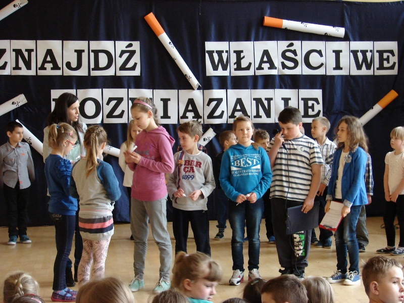 Uczniowie Samorządowego Zespołu Szkół nr 2 w Opatowie, zorganizowali podsumowanie prowadzonej akcji pod hasłem „ZNAJDZ WŁAŚCIWE ROZWIĄZANIE”. Podczas spotkania uczniowie zaprezentowali krótkie scenki, dotyczące szkodliwości palenia tytoniu, wzięli również udział w konkursie plastycznym promując zdrowy styl życia. Zwycięzców nagrodzono upominkami oraz okolicznościowymi dyplomami.