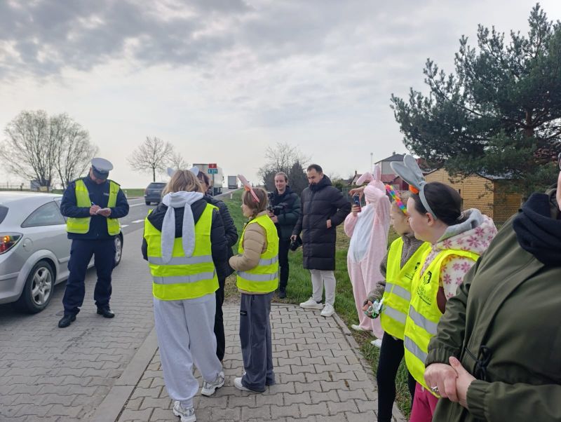 Funkcjonariusze Komendy Powiatowej Policji w Opatowie wspólnie z uczniami Szkoły Podstawowej w Sadowiu przeprowadzili działania profilaktyczne pod nazwą „Wielkanocny Króliczek”. To cykliczna akcja skierowana na bezpieczeństwo w ruchu drogowym.