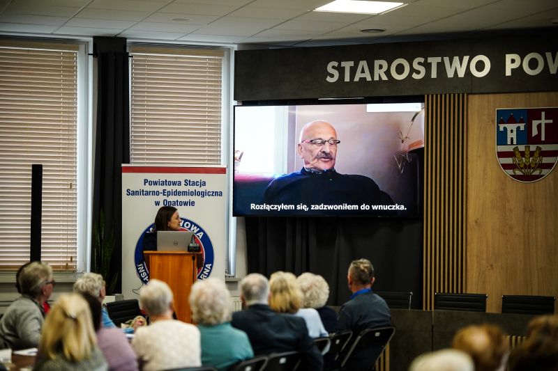 W piątek Sala Konferencyjna Starostwa Powiatowego w Opatowie wypełniła się seniorami oraz specjalistami z Powiatowej Stacji Sanitarno – Epidemiologicznej w Opatowie, ponadto wśród prelegentów znalazła się opatowska policjantka. Spotkanie pod hasłem „Złota jesień w pełnym zdrowiu” zorganizowane zostało w ramach dni otwartych Sanepidu z okazji przypadającego na 10 kwietnia Światowego Dnia Zdrowia. Poza tematami związanymi bezpośrednio ze zdrowiem seniorów znalazł się również temat nawiązujący do ich bezpieczeństwa osobistego. Zaproszeni goście mieli okazję wysłuchać prelekcji dotyczącej działań przestępców w zakresie oszustw internetowych, wyłudzania pieniędzy pod legendą „na pracownika banku”, „policjanta”, czy dość aktywną w ostatnim czasie formą „paczki pobraniowej”. Seniorzy mieli okazję również obejrzeć nawiązujące tematyką filmy profilaktyczne przygotowane przy współudziale członków Uniwersytetu III Wieku oraz dzieci ze Szkoły Podstawowej we Włostowie.