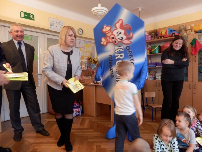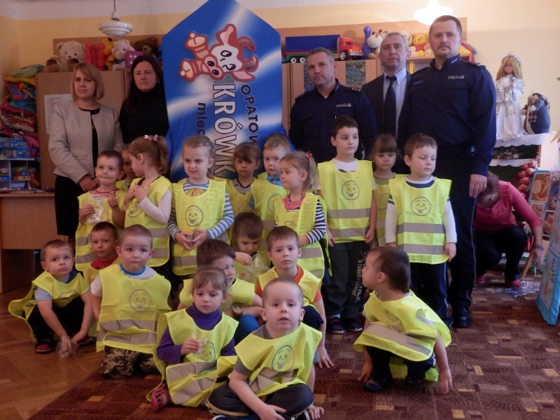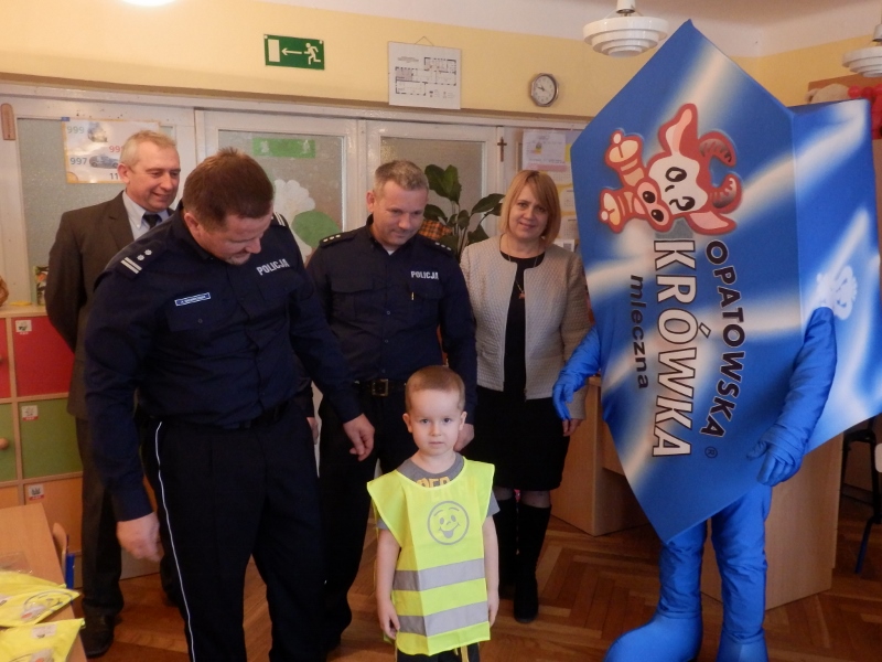 W piątkowe przedpołudnie w Opatowskim przedszkolu przyszedł czas na prezenty. Zastępca Komendanta Powiatowego Policji w Opatowie mł. insp. Andrzej Skowroński, naczelnik wydziału prewencji kom. Gustaw Szczepański i przedstawiciele Gminnej Komisji Rozwiązywania Problemów Alkoholowych Elżbieta Chodorek i Małgorzata Stankowska- Kolasińska rozdali dzieciom kamizelki odblaskowe, oraz zawieszki na plecaki. Najlepszym dowodem na to, że to trafiony prezent był uśmiech na twarzach dzieci. Kamizelki te wykorzystywane będą w codziennych spacerach poza terenem przedszkola.
