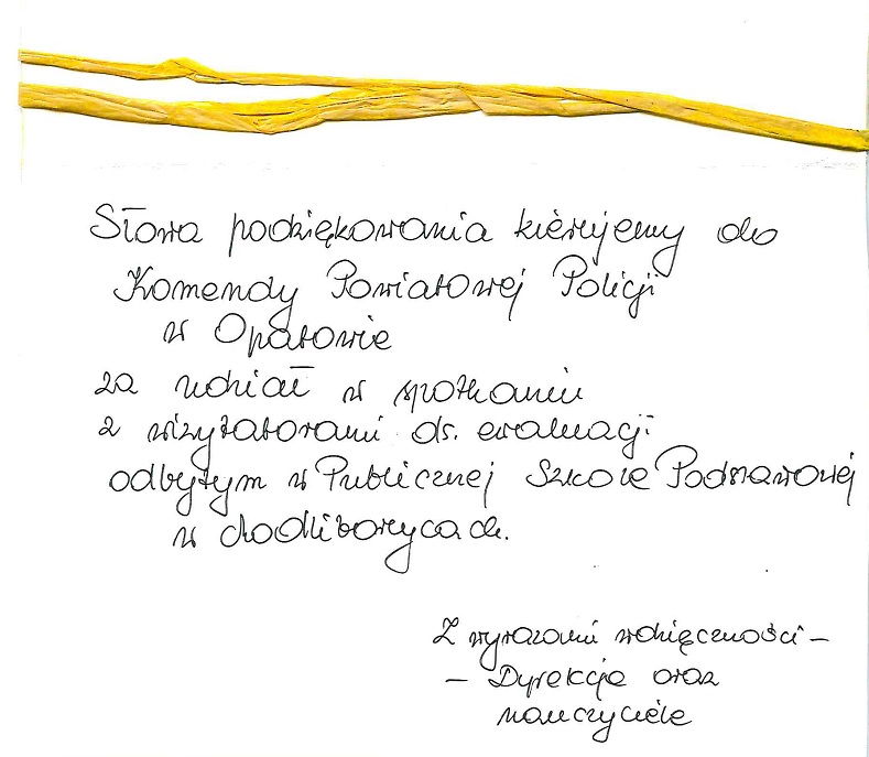 Podziękowanie od Publicznej Szkoły Podstawowej w Modliborzycach
