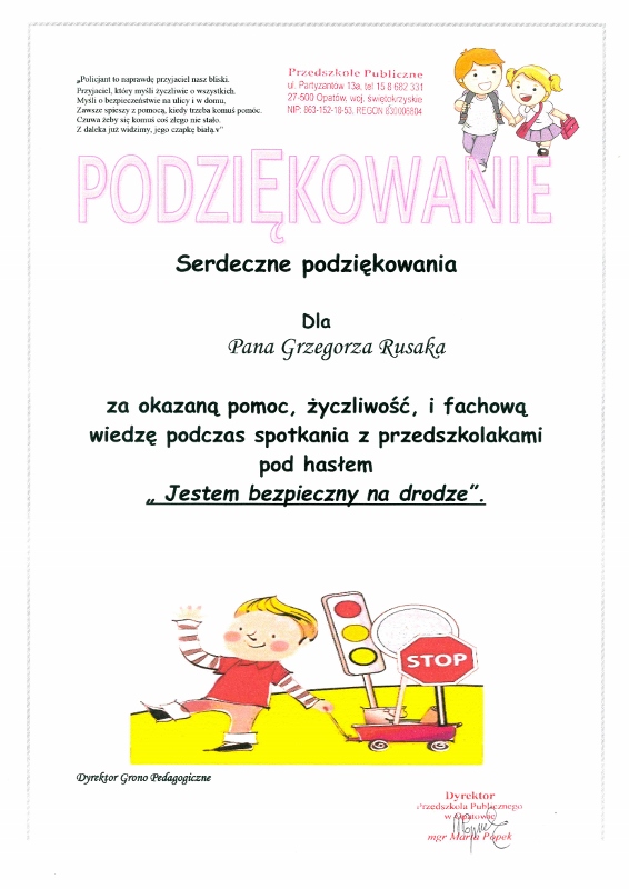 Podziekowanie od Przedszkola Publicznego w Opatowie