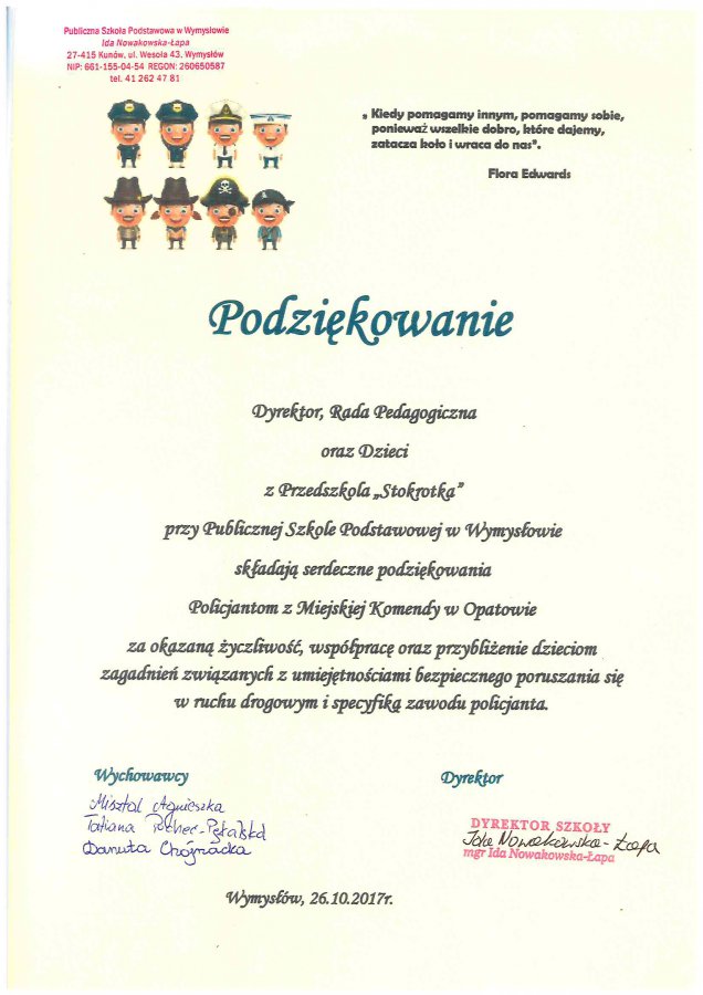 Podziękowanie od Przedszkola Stokrotka - Podziękowania