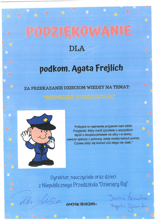 Podziękowanie od Przedszkola Dziecięcy Raj - Podziękowania